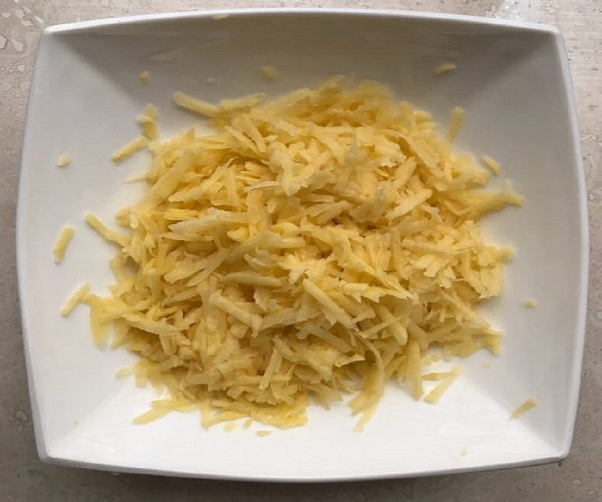- آرد بادام، دارچین و نمک را با هم مخلوط کنید و تخم مرغ، عسل و روغن را اضافه کنید و به آرامی هم بزنید تا یک دست شود سپس سیب رنده شده را به مخلوط اضافه کنید.