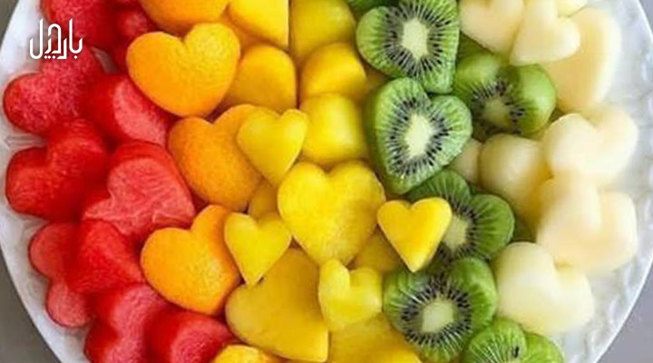 • برای یک سالاد با تم عاشقانه، سبزیجات و میوههای خرد شده را به شکل قلب در آورید. سپس داخل قلب را با میوهای با رنگ دیگر پر کنید.