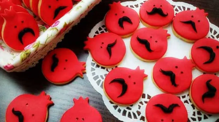 نکته: بهتر است از یک روز قبل کوکیها را پخته و روز بعد آنها را تزئین کنید. برای تزئین کوکی انار میتوانید از انواع آجیل و مغزها، میوه خشک و خوراکیهای یلدایی دیگر نیز استفاده کنید.