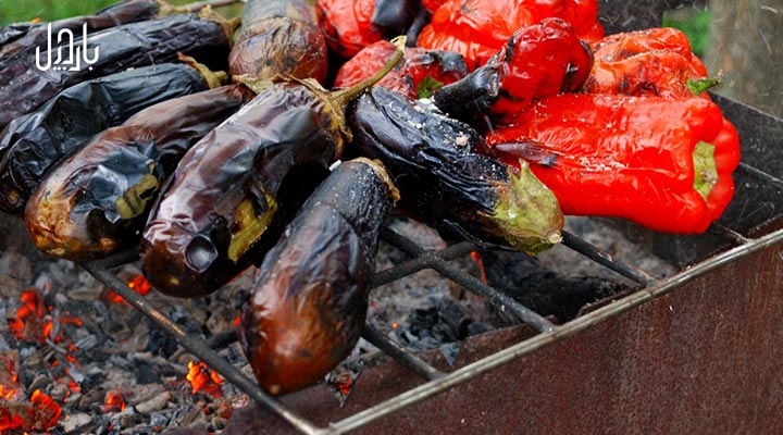 - ابتدا باید با توجه به نفرات سفر، تعدادی بادمجان، گوجه و مقداری سیر را روی آتش کبابی کنید. سپس همه را پوست کنده، مخلوط کرده و تا جای ممکن له یا ساطوری کنید.