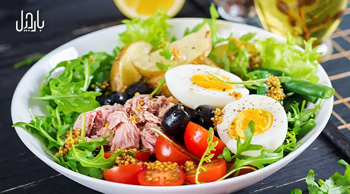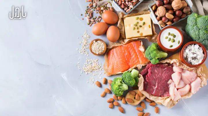 پروتئینها: گوشت بدون چربی و مرغ، تخم مرغ، غذاهای دریایی، لوبیا و عدس، آجیل و دانهها