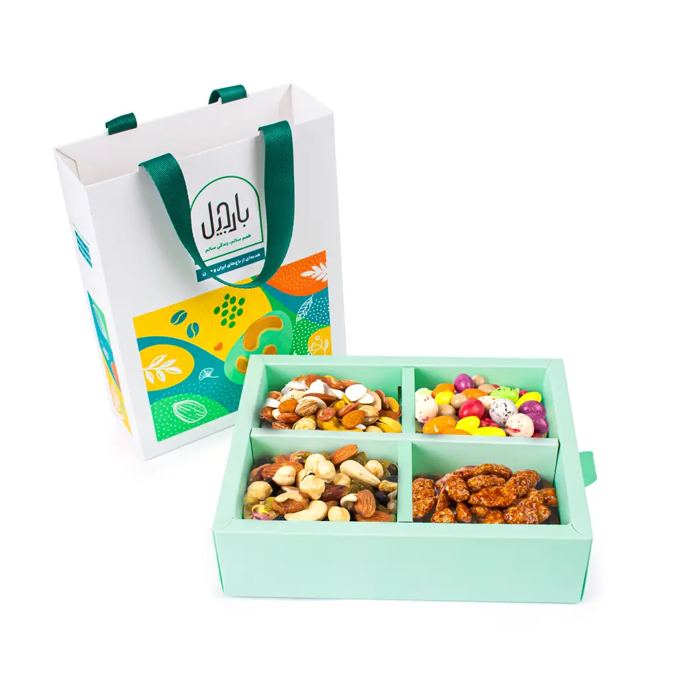نوروز نزدیک است، فرصتی دوباره برای استراحت، تفریح و تجدید انرژی در کنار خانواده. مهمترین سرمایه هر سازمان، نیروی انسانی و کارمندانش است. بارجیل با پک سرزمین طعم به شما و کارمندانتان کمک میکند تا نوروزی زیبا و خاطرهانگیز داشتهباشید. هدیه سازمانی سرزمین طعم بارجیل، حاوی آجیل مخلوط شش مغز، مخلوط آجیل شیرین، مخلوط دراژه و بادام سوخته است. ترکیبی از مزههای شیرین، نمکی و نوستالژیک در بستهبندی زیبا. مزههایی که مارا به خانه مادربزرگ، سوهان بادام سوخته و آجیلهای بوداده روی میزش میبرد.