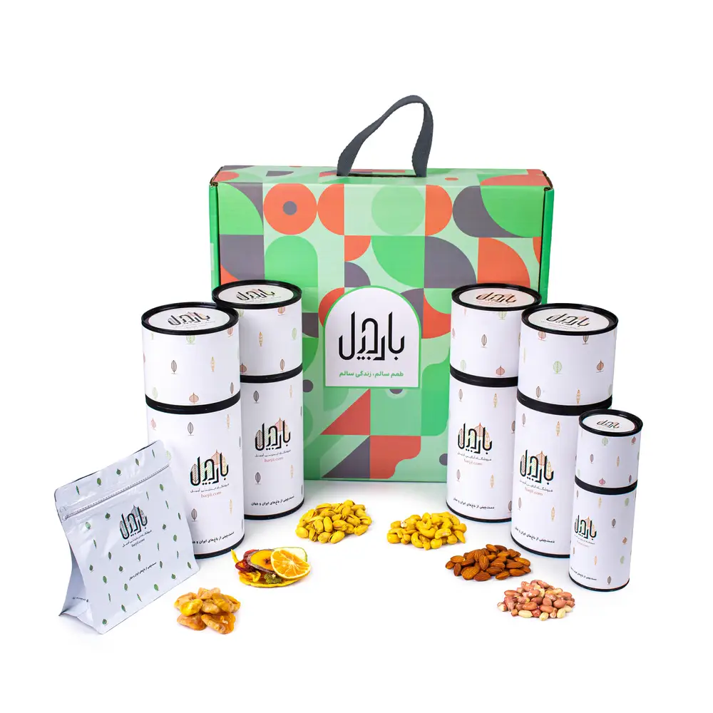 جذابترین بخش دید و بازدیدهای عید نوروز خوراکیهایی است که در مجالس میخوریم. تنوع خوراکیهایی که در این مهمانیها سرو میشود به قدری است که اگر بخواهیم از هر کدام فقط بچشیم دیگر نمیتوانیم غذا بخوریم! پک سازمانی سرزمین طعم بارجیل یکی از پکهای پر پر و پیمان این فروشگاه اینترنتی آجیل و خشکبار است. خوراکیهای داخل این پک بسیار متنوع هستند به طوری که حسابی مجالس دید و بازدید عید همکارانتان را رنگین میکند و خاطرات خوشی را برایشان رقم میزند. پک سازمانی سرزمین طعم بارجیل شامل بادام هندی زعفرانی اقتصادی، پسته اکبری برشته زعفرانی اقتصادی، مغز بادام برشته زعفرانی اقتصادی، مخلوط میوه خشک، برگه انجیر کرمانشاهی و مغز بادام زمینی برشته آستانه است که در بستهبندی جعبه کیبوردی دستهدار عرضه میشود.