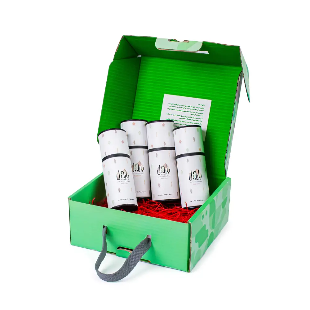 | غیرخوراکیها | قوطی مقوایی 250 گرمی – 1 عدد پاکت زیپ دار 250 گرمی – 2 عدد |
