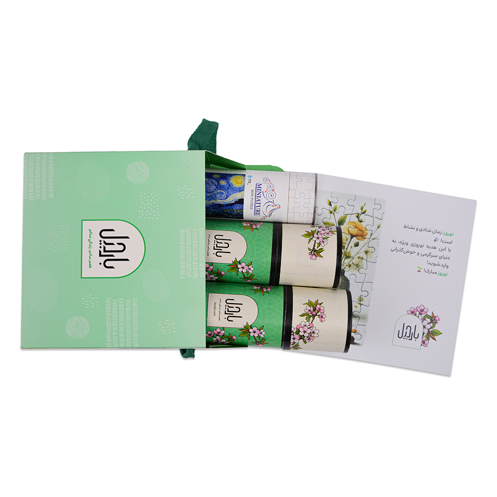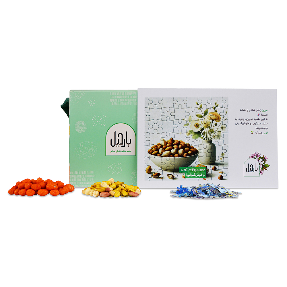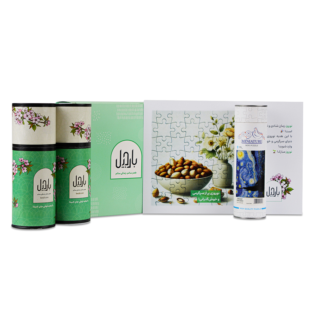 مخلوط آجیل دورهمی و بادام زمینی روکشدار کچاپ، طعمی جذاب و لذتبخش برای دورهمیها و مهمانیها ایجاد میکند. پازل استوانهای به عنوان یک سرگرمی فکری، اوقات فراغت را پر از چالش و سرگرمی میکند. همچنین، جوکها به این هدیه نوروزی سازمانی شور و نشاط اضافه میکنند.
