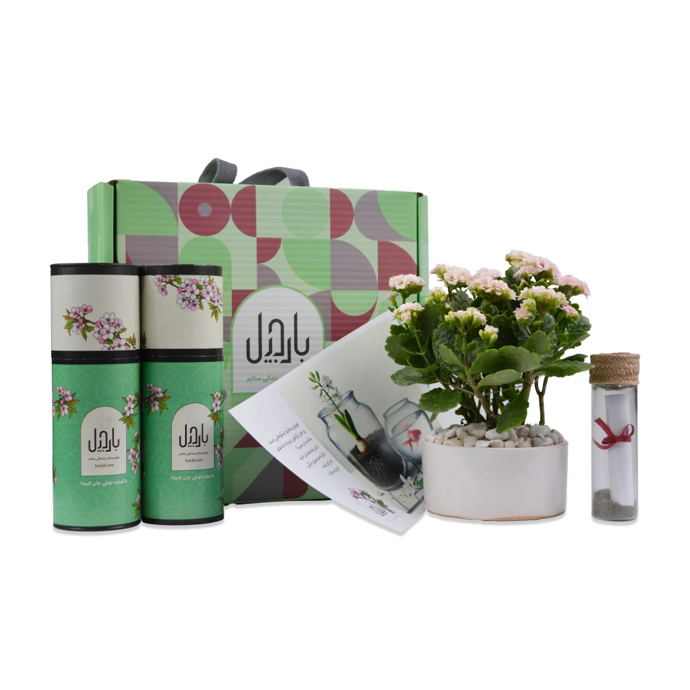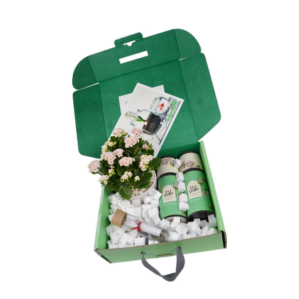 این هدیه شامل یک گلدان زیبا، بسته بذر، و یک کپسول شیشهای توسعه فردی است که پیام رشد و تحول را به گیرنده منتقل میکند. همچنین، ترکیب مغذی مخلوط آجیل برشته و میوه خشک، یادآور سلامت و نشاط است. بستهبندی لوکس این هدیه با طراحی مدرن، مناسب برندهایی است که به جزئیات اهمیت میدهند.
