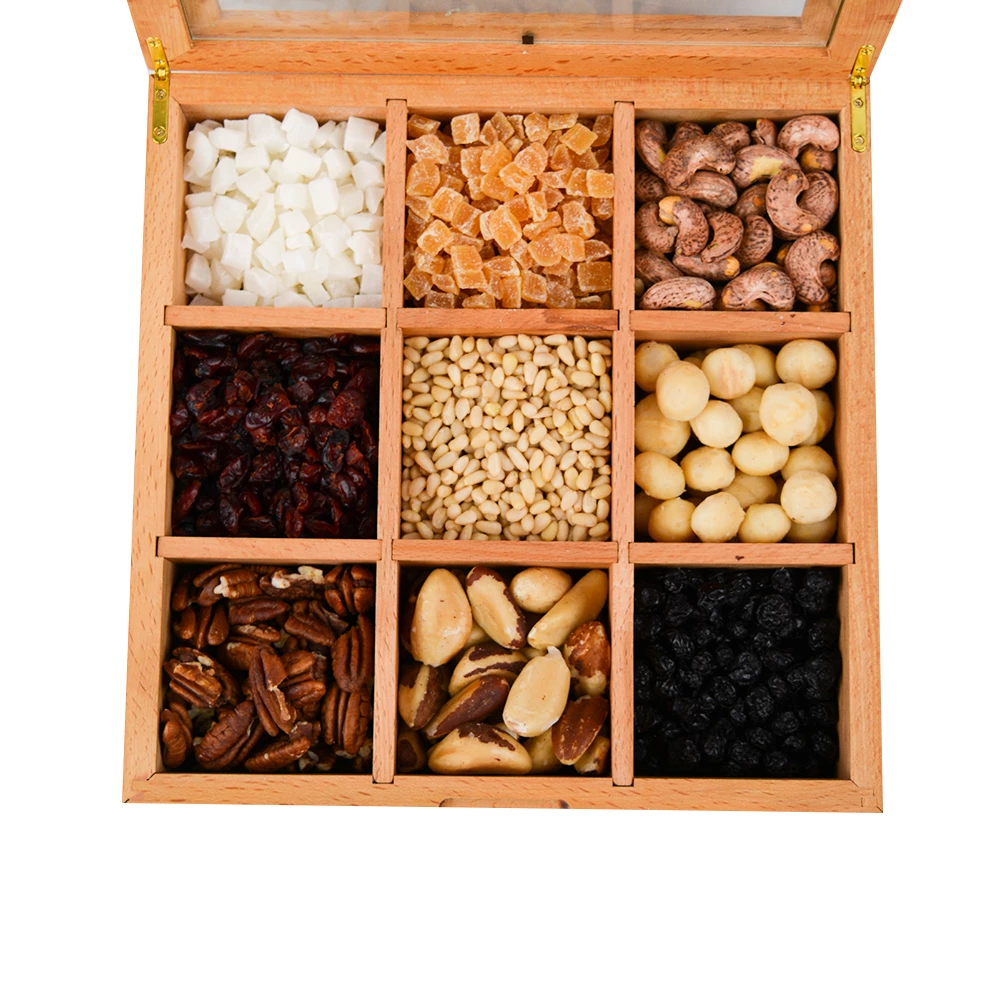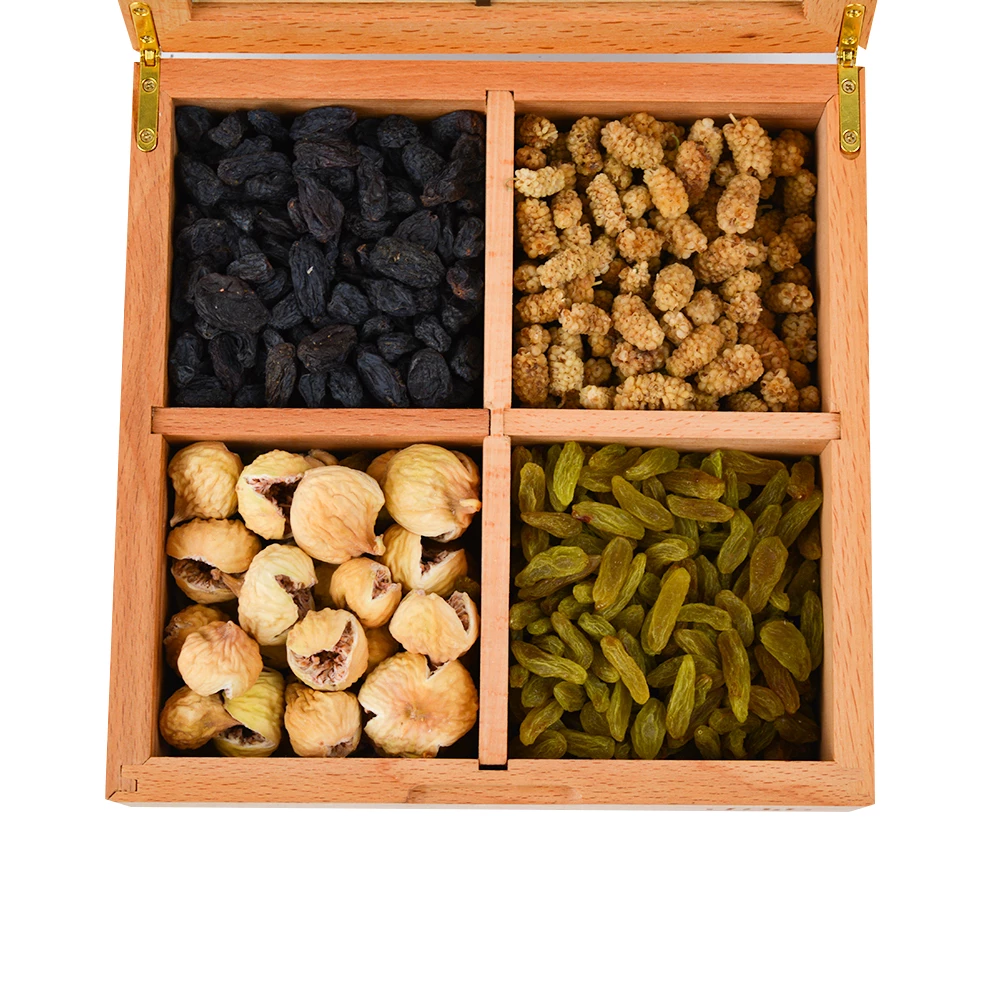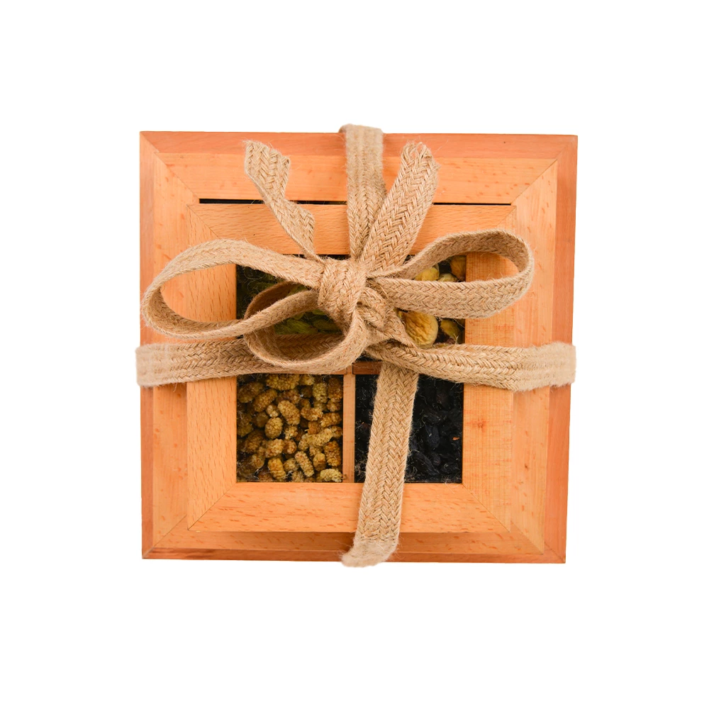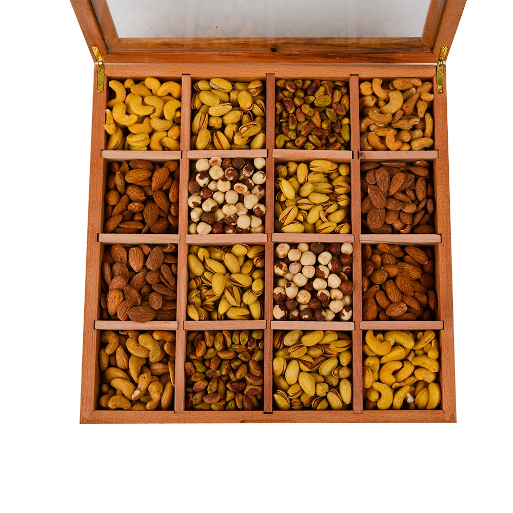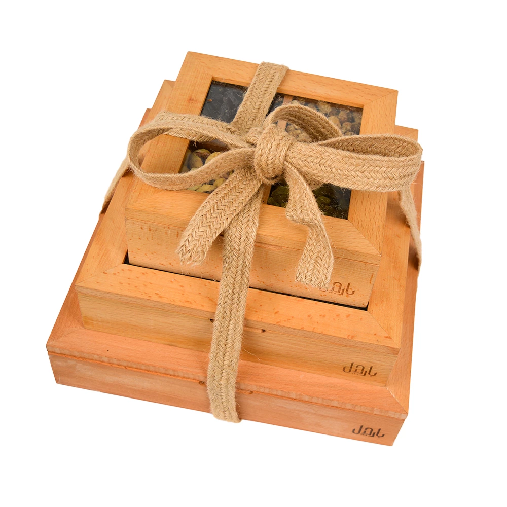هدیه سازمانی عید نوروز «خانه» یک مجموعه متنوع و شیک از خشکبار و میوههای خشک است که بهخوبی میتواند جایگاه ویژهای در سبد هدایا پیدا کند. این هدیه سازمانی با ترکیب مختلفی از انواع مغزها و میوههای خشک، که در جعبههای چوبی با تعداد خانههای مختلف قرار دارند، بهشکلی مدرن و لوکس بستهبندی شده است. طراحی بستهبندی با استفاده از بند کنفی، حس طبیعی و اصالتی به این هدیه سازمانی نوروزی بخشیده و آن را مناسب برای افرادی میکند که به دنبال هدیهای با کیفیت و پرمحتوا هستند.