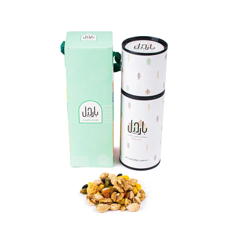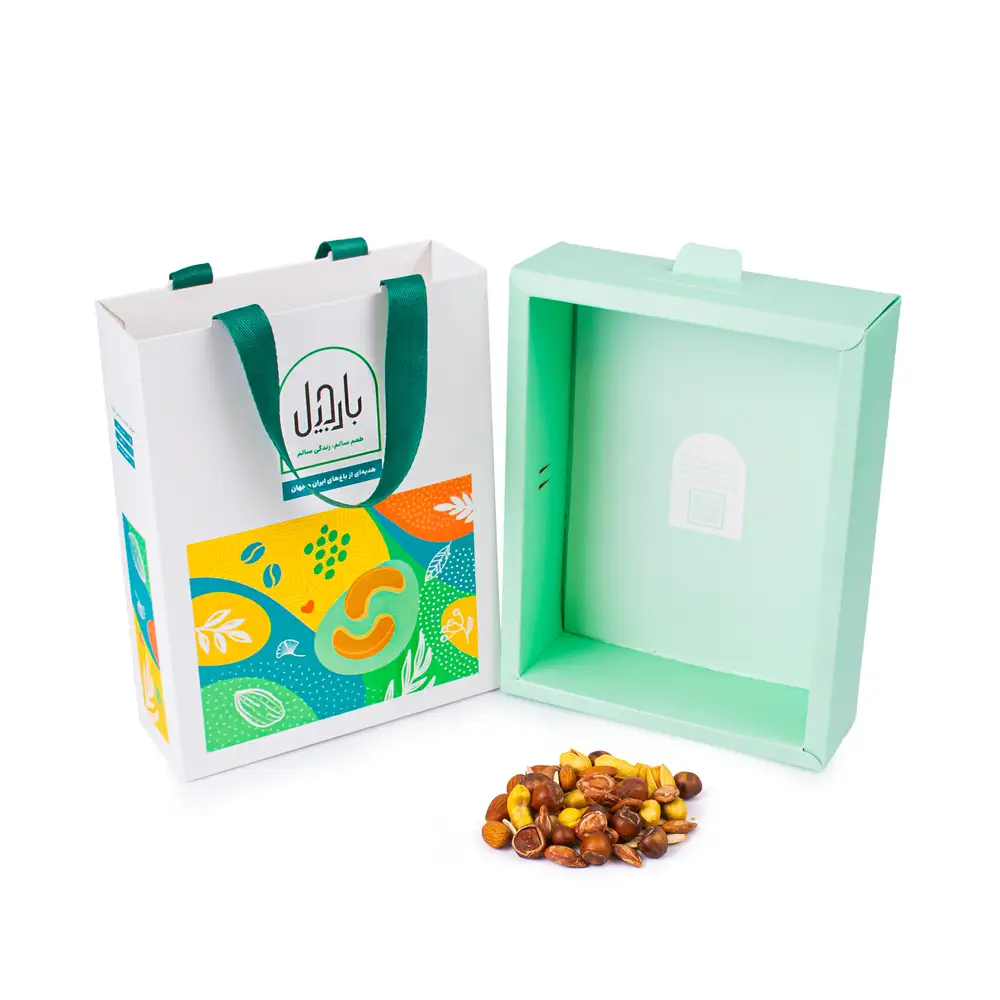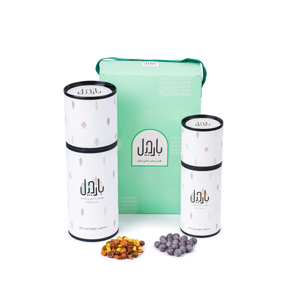 | خوراکیها | پسته احمد آقایی برشته زعفرانی ممتاز – 250 گرم دراژه خالدار با مغز کشمش – 250 گرم برگه قیسی اعلی – 250 گرم مخلوط آجیل پنج مغز – 250 گرم (محتوای مخلوط آجیل پنج مغز: بادام زمینی برشته زعفرانی مغز فندق برشته زعفرانی مغز بادام برشته زعفرانی ممتاز بادام هندی برشته زعفرانی ممتاز مغز پسته کشیده برشته زعفرانی ممتاز) |