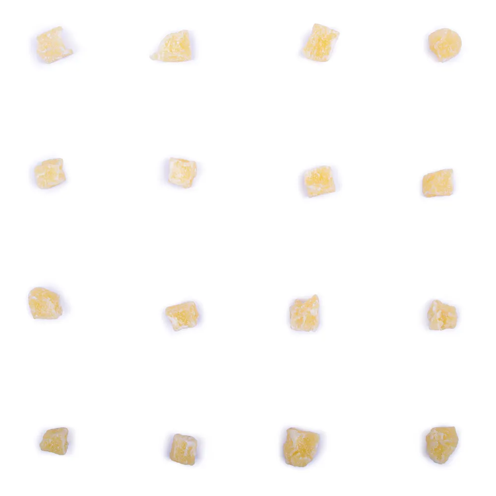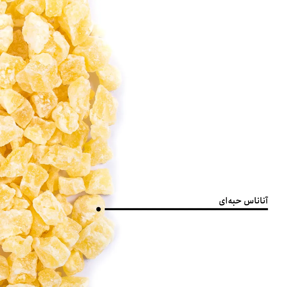 محصول آناناس خشک حبه‌ای از مکعب‌هایی کوچک تشکیل شده، ظاهر وسوسه‌انگیز و خوشمزه‌ای دارد و طعمش مثل قند شیرین است. زیر دندان‌هایتان به آرامی خرد می‌شود و همین موضوع، سبب جذابیت میوه‌ آناناس شده است. فرآیند تهیه آناناس خشک حبه‌ای با دیگر محصولات خشکبار فرق دارد. آناناس تازه پخته و خشک می‌شود. به این ترتیب در تمام طول سال در دسترس کسانی که شیفته‌ طعم میوه‌های استوایی هستند، قرار می‌گیرد.