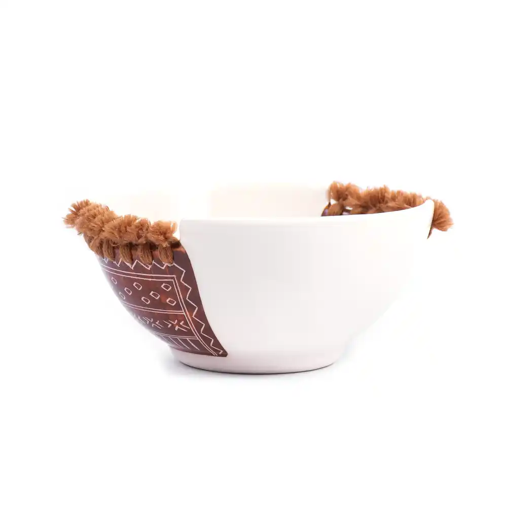 طراحی کاسه افرا بهصورت تلفیقی مدرن و سنتی است و دل همه افراد با هر سلیقهای را به دست میآورد. سطح صاف و سرامیکی آن به همراه ریشه های گلیمی که از لبه کاسه افرا سربرآورده، طراحی بینظیری ایجاد کرده که نشان از اصالت ایرانی این محصول است. شما میتوانید این کاسه زیبا را بهصورت خرید اینترنتی تهیه کنید و به حال و هوای آشپزخانهتان نفسی تازه بدمید!