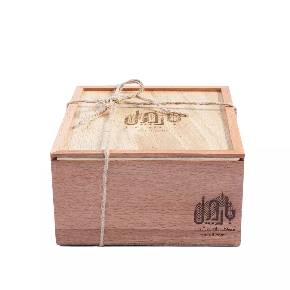 جنس ظرف: چوب راش گرجستان با در شیشهای |