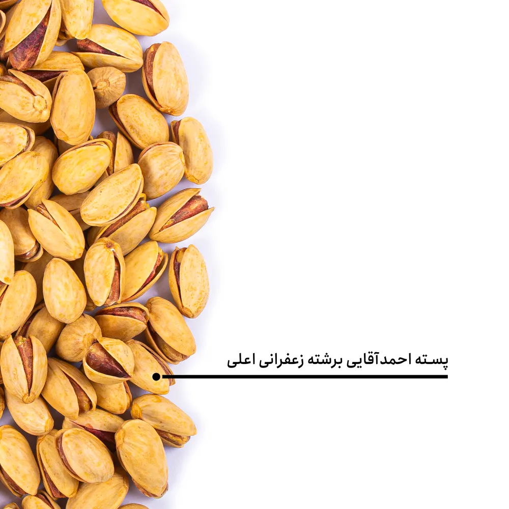 پسته احمدآقایی برشته زعفرانی اعلی بارجیل از مرغوبترین انواع پستههاست، شما میتوانید با تهیه این پسته از خواص بسیاری که بر روی تقویت معده، تسکین سرفه، آرامش قلب و آرامش اعصاب، بهبود مجاری کبدی، درمان اسهال، تقویت حافظه و ذهن، افزایش نیروی جنسی، درمان کم خونی و تامین انرژی روزانه دارد، بهرهمند شوید. پسته احمدآقایی به نسبت پسته اکبری کوچکتر و نسبت به نوع فندقی بزرگتر است. پسته احمدآقایی برشته زعفرانی اعلی بارجیل با رنگ و برشتگی که دارد، طعمی استثنایی دارد و مناسب هدیه برای مسافران، مهمانیها و دورهمیهای شماست همچنین مناسب برای تهیه خلال پسته است. به طور کلی پسته جز مغزهای محبوب و پرطرفدار است که جدای از مصارف تنقلاتی برای تزیین انواع دسرها و پخت انواع غذاها مانند شیرین پلو و انواع کیکها وشیرینیها کاربرد بسیاری دارد. همین حالا این پسته خندان و لوکس را به صورت آنلاین از طریق سایت بارجیل سفارش دهید و در بستهبندی دلخواهتان دریافت نمایید.