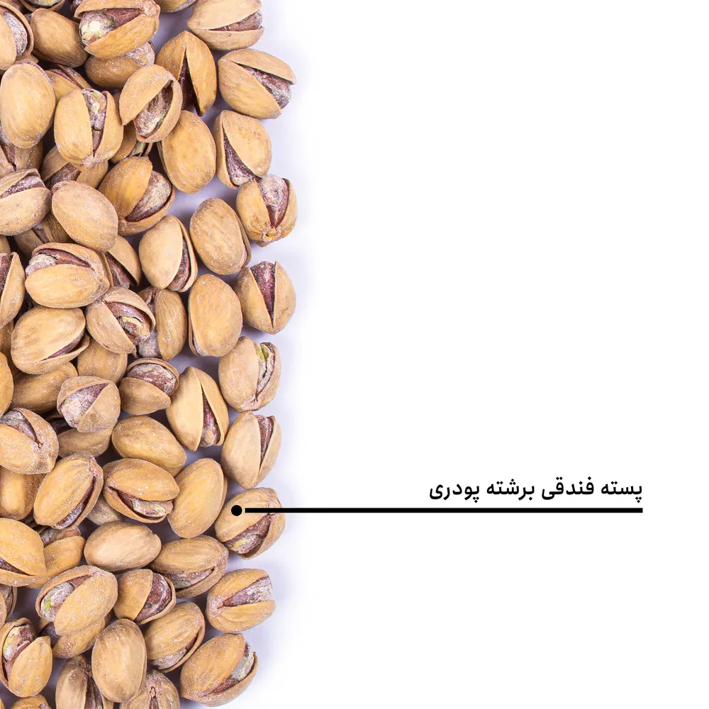 پسته فندقی برشته پودری یکی از پرفروشترین پستههای بارجیل است. این آجیل برشته و طعمدار به دلیل طعم دلچسب برشتگی و نمک پودری که با آن ترکیب شده است پستهای بسیار خوشمزه و مغذی درعین حال کم نمک به شمار میآید. این نوع از پسته فندقی بهترین انتخاب برای ترکیب در آجیل مهمانی و دورهمیهای شما میباشد. پسته فندقی برشته پودری بارجیل با ظاهر، رنگ و طعمی فوقالعاده گزینهای عالی برای خرید و جایگزین کردن میانوعده و مزه و تنقلات نمکی مغذی و مقوی در برنامه غذایی شما و کودکان است. مصرف 10 عدد از آن در روز انرژی و سلامت عمومی بدن شما را تامین و تضمین میکند. پسته فندقی برشته پودری بارجیل دارای مغزی خوشمزه، رنگ و طعمی عالی و شکل کروی و گرد میباشد.