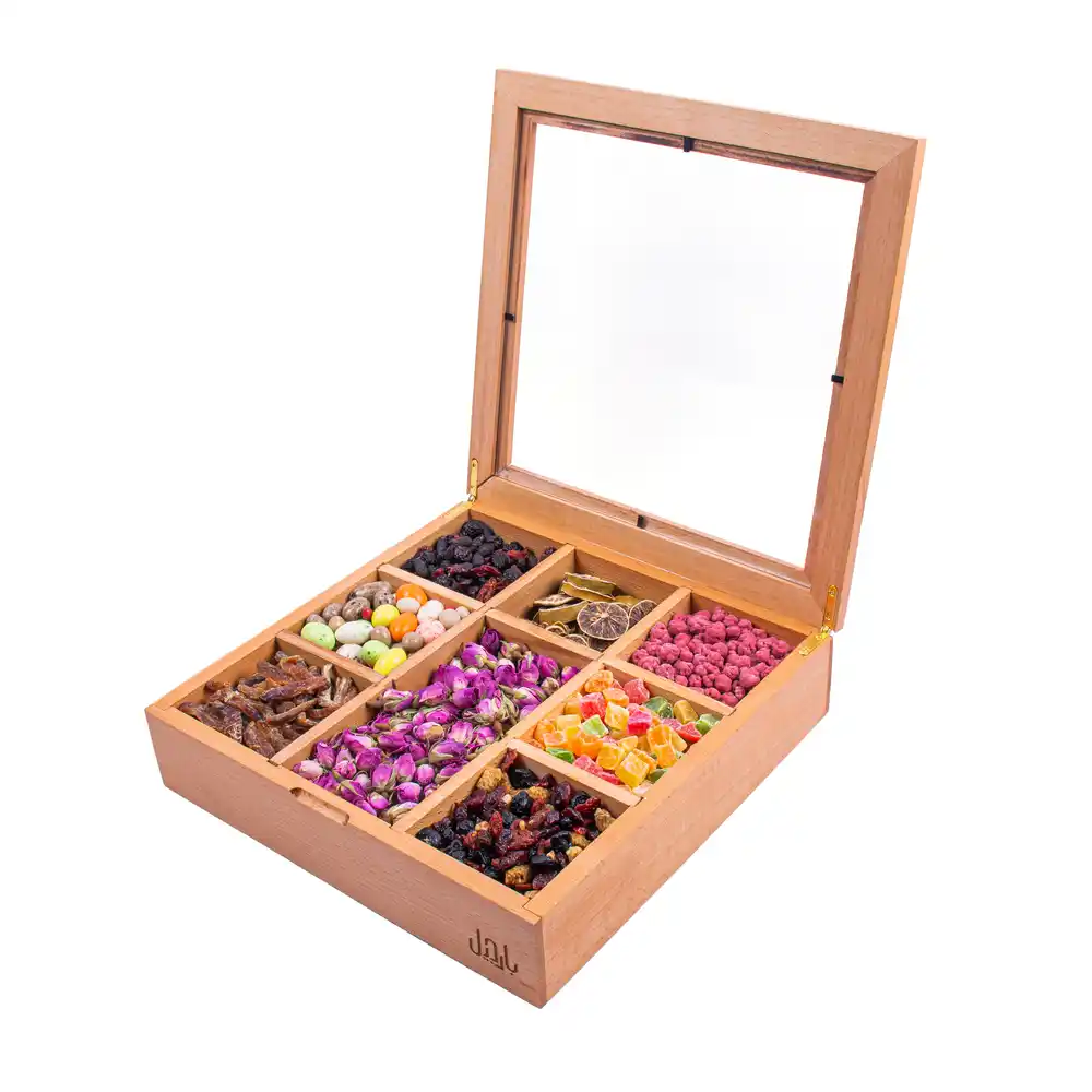 با یک تیر چند نشان زدن، حس خوبی به آدم می‌دهد. انگار مسابقه‌ای را برنده می‌شویم. همانقدر خوشحالی و رضایت به همراه دارد. جعبه پذیرایی ۹ خانه، یعنی ۹ فضا برای پذیرایی از مهمان و ظاهری شیک و مینیمال برای خانه یا محل کارتان. طریقه نگهداری از این محصول ساده است و شما کار سختی ندارید. فقط هر آن چیزی که برای پذیرایی در ذهن دارید را آماده کنید، محصول ما را سفارش دهید و آماده آمدن مهمان‌هایتان باشید.