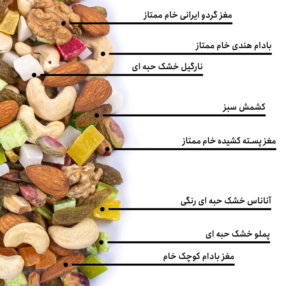 آجیل و مغزها و میوههای خشک برای ما ایرانیان پیشینه قدیمی و سنتی داشتهاند و از پرمصرفترین تنقلات به شمار میآیند. آجیلها نماد شادی در مراسم و اعیاد اصیل ایرانی هستند و انواع بسیاری دارند، اما در گذر زمان تنوع بسیاری در طعم و ترکیب آجیلها به وجود آمده است. مخلوط آجیل استوایی یکی از ترکیبات و انواع آجیل مخلوط است که به خاطر تنوع طعمهای موجود درآن بسیار محبوب و پرطرفدار است. مخلوط آجیل استوایی بارجیل یکی از مرغوبترین و با کیفیتترین مخلوطهای موجود در بازار خشکبار است که شامل کشمش سبز، نارگیل خشک حبه ای، مغز گردو ایرانی خام، ممتاز بادام هندی خام ممتاز، آناناس خشک حبهای رنگی، مغز بادام خام ممتاز، پُملو خشک حبهای، مغز پسته کشیده خام ممتاز است. ترکیب این آجیل هیجانانگیز، خوشمزه و فوقالعاده مقوی خواص بسیاری برای تقویت سیستم ایمنی بدن، سلامت پوست و مو، بهبود دستگاه گوارش، سلامت قلب، تقویت استخوانها و مفاصل و غیره دارد. مخلوط آجیل استوایی بارجیل انتخابی عالی به عنوان هدیه برای عزیزانتان، چیدن یک میز پذیرایی زیبا و به عنوان میان وعدهای مقوی در رژیم ورزشکاران و کاهش وزن میباشد. این محصول جذاب و خوش طعم را از طریق سایت بارجیل به صورت آنلاین سفارش دهید و در بستهبندیهای مختلف در منزل تحویل بگیرید.