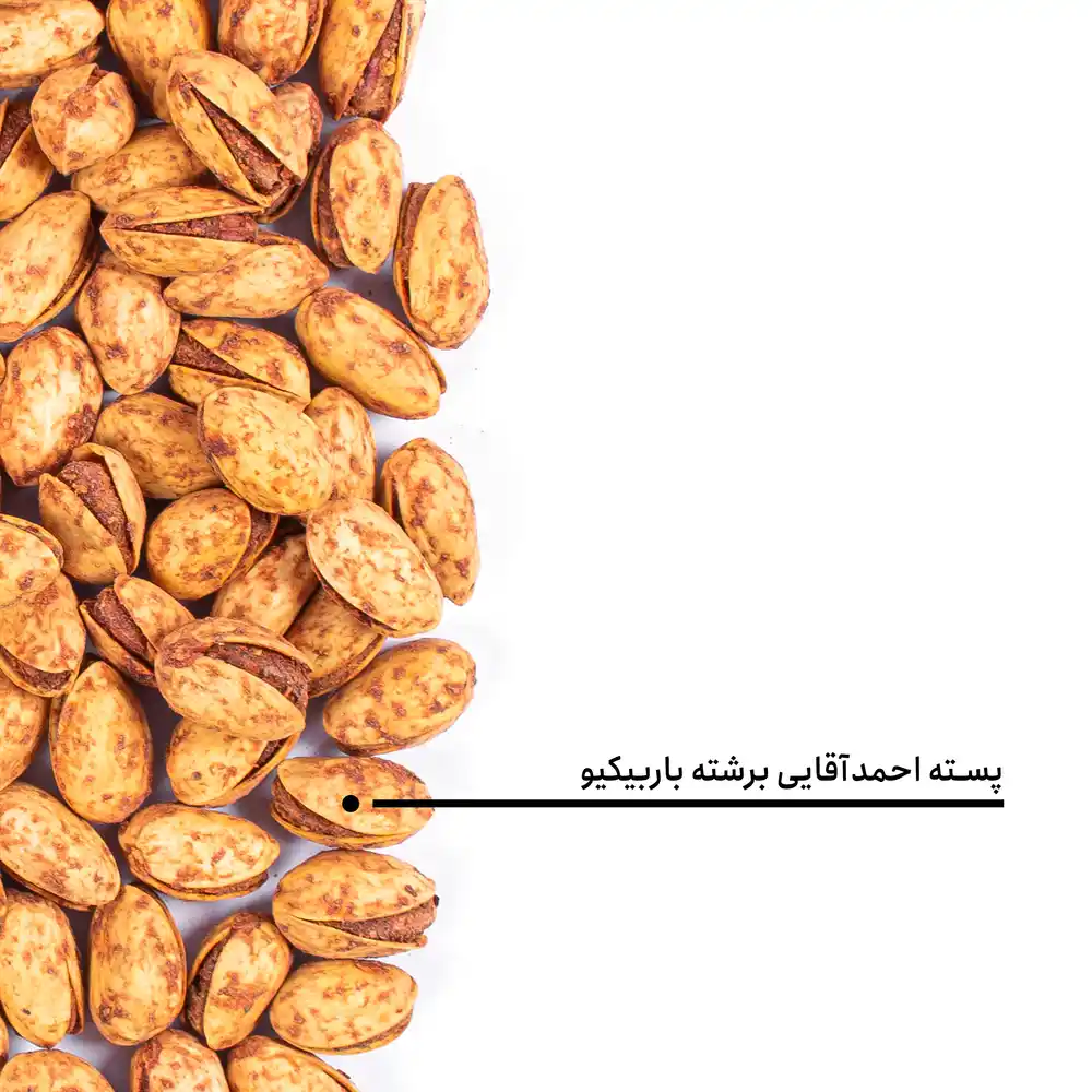 باربیکیو یکی از طعم‌هایی است که قبلاً محدود به استفاده در طبخ انواع گوشت مرغ و قرمز بوده است. ولی این روزها به‌عنوان طعم‌دهنده در خیلی از خوراکی‌ها مثل پسته و آجیل به کار می‌رود. طعم این سس را می‌توانیم کمی شیرین و دودی هیجان‌انگیز که تند هم است توصیف کنیم. شکر قهوه‌ای، نمک، فلفل سفید و سیاه، پودر سیر، دارچین، پودر خردل، زیره سبز، فلفل قرمز و پودر گشنیز موادی هستند که باهم دست همکاری می‌دهند تا باربیکیو را بسازند. این ادویه در فر‌آیند طعم‌دهی به پسته احمدآقایی بارجیل اضافه می‌شود و ترکیب آن‌ها باهم همان راز جادویی است که طعمی خاص را به ارمغان می‌آورد.