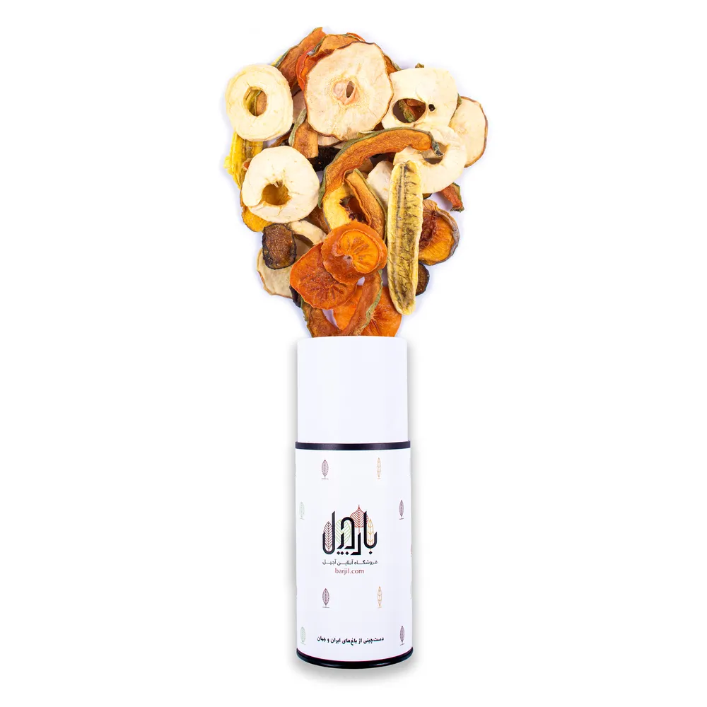 میوههای خشک همچون میوهها جهان گوناگون، متفاوت و منحصر بهفردی دارند. میتوانیم آنها را در دورهمیهای دوستانه میل کنیم. میتوان آنها را با عزیزانمان بخوریم و از خاطراتمان سخن بگوییم. حتی هنگام یک جلسه کاری مهم یک پذیرایی مناسب و شیک را برای ما فراهم میکنند. یکی از این مخلوط میوهها، مخلوط میوههای شیرین بارجیل است. این محصول خوشمزه و بسیار شیک از میوههایی چون ملون خشک ورقه ای، موز خشک ورقه ای، خرمالو خشک ورقه ای، هلو خشک ورقه ای، سیب زرد خشک ورقه ای، انجیر سیاه خشک ورقه ای، گلابی خشک ورقه ای تشکیل شده است که آن را برای کسانی که دوستدار طعمهای شیرین هستند تا حد بسیار زیادی هیجانانگیز میکند. میوههای خشک خواص بسیار زیادی نیز دارند. از کمک به شفافیت پوست تا بهبود عملکرد روده و جلوگیری از یبوست. برای افراد دیابتی نیز توصیه میشوند چرا که دارای قند طبیعی هستند. به کاهش کم خونی و دفع کلسترول بد بدن نیز کمک قابل توجهایی میکنند. مخلوط میوههای خشک شیرین بارجیل همان گمشدهایی است که شما میتوانید هنگام پذیرایی از مهمانانتان آن را ارائه دهید. کافی است که همین حالا مقداری از مخلوط میوههای خشک شیرین را به سبد خرید خود اضافه کنید و آن را در سریعترین و کوتاهترین زمان ممکن هر کجا که خواستید تحویل بگیرید. انتخاب نوع بستهبندی این محصول متفاوت نیز با خود شما و سلیقه نابتان است.