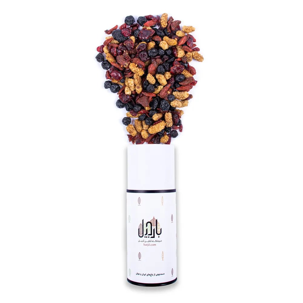 توتها هم خوشمزه هستند و هم خواص زیادی دارند. بیخود نیست که به آنها میوه بهشتی میگویند. توت خشک میتوانند جایگزین خوبی برای قند باشند. هنگامی که ما چای و یا نوشیدنیای گرم مینوشیم. توت به راستی خوشمزه و سالم است اما بارجیل محصولی را فراهم کرده که خوشمزگی و سالم بودن را در حد اعلای خود دارد. داریم درباره مخلوط توتهای بارجیل صحبت میکنیم که یک محصول هیجانانگیز و جذاب در دسته آجیل و خشکبار برای دوستداران توتها هست. چرا؟ زیرا شامل گوجیبری خشک، کرنبری خشک، بلوبری خشک، توت خشک ممتاز است. یعنی چند محصول متفاوت و منحصربهفرد در یک مخلوط. یعنی خواص آنتیاکسیدانی و ویتامینی بسیار زیاد. یعنی مخلوطی ضد سرطان و ضد مشکلات قلبی و عروقی و حتی ضد دیابت. پس همین حالا مخلوط توتهای بارجیل را به سبد خرید بارجیلی خود در سایت بارجیل اضافه کنید و آن را در سریعترین و کوتاهترین زمان ممکن تحویل بگیرید. همچنین شما میتوانید بر اساس سلیقه نابتان نوع بستهبندی محصول خود را انتخاب کنید تا تجربهایی شیرینتر از خرید آنلاین داشته باشید.