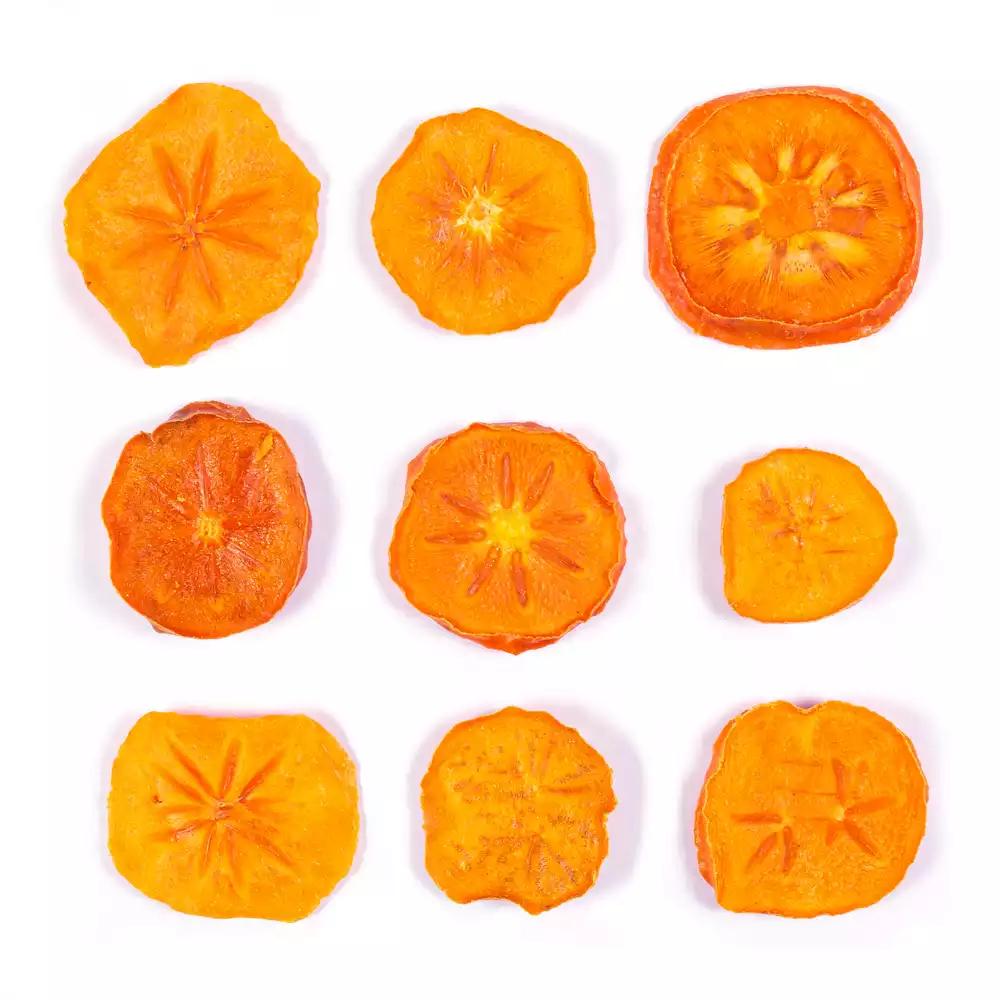 هنگامی که خرمالوهای خشک آماده مصرف شوند، روی سطح آن یک پوشش روشن از شکر ایجاد میشود. این پوشش پودری، خوراکی و نشانه شیرینی میوه است. خرمالو خشک، طعمی غلیظ و قندی دارد و با همین مزه عسلی افراد بسیاری را به خود جذب کرده است.
