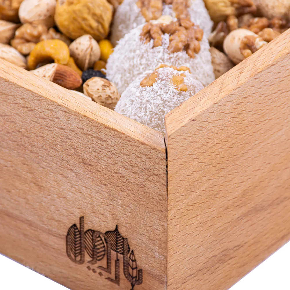 جنس ظرف: چوب راش گرجستان با در شیشهای |
